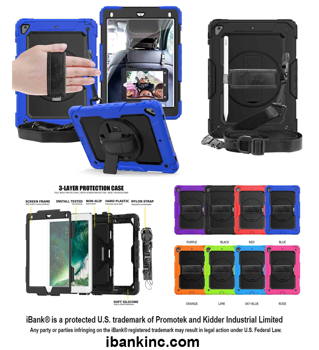Full Body Protection with Screen Protector. 3 layer heavy duty bumper case, combined with 1 layer flexible silicone and 2 layer hard PC linings as well as built-in screen protector, providing full body protection of your iPad against accidental drops, scratches, shocks, bumps and dirt. Rotatable Kickstand and Hand Strap. Rotatable Kickstand offers multi angle stands for enjoying the most comfortable keyboard typing and movie viewing. The Rotatable and Adjustable Hand Strap makes you hold or use your device easier in all directions. Also designed with a Pen Holder to grab your Apple Pen whenever you want, easily to carry your Apple pen with your device. Apple Pen is NOT included. Removable and Adjustable Shoulder Strap. Adjustable and removable shoulder strap can be attached to any two holes in the PC cover to carry your device vertically or horizontally like a messenger bag, you could even hang it behind the car seat or hang on wherever you want. Convenient for carrying your device when you at work, on trip or at outdoors.